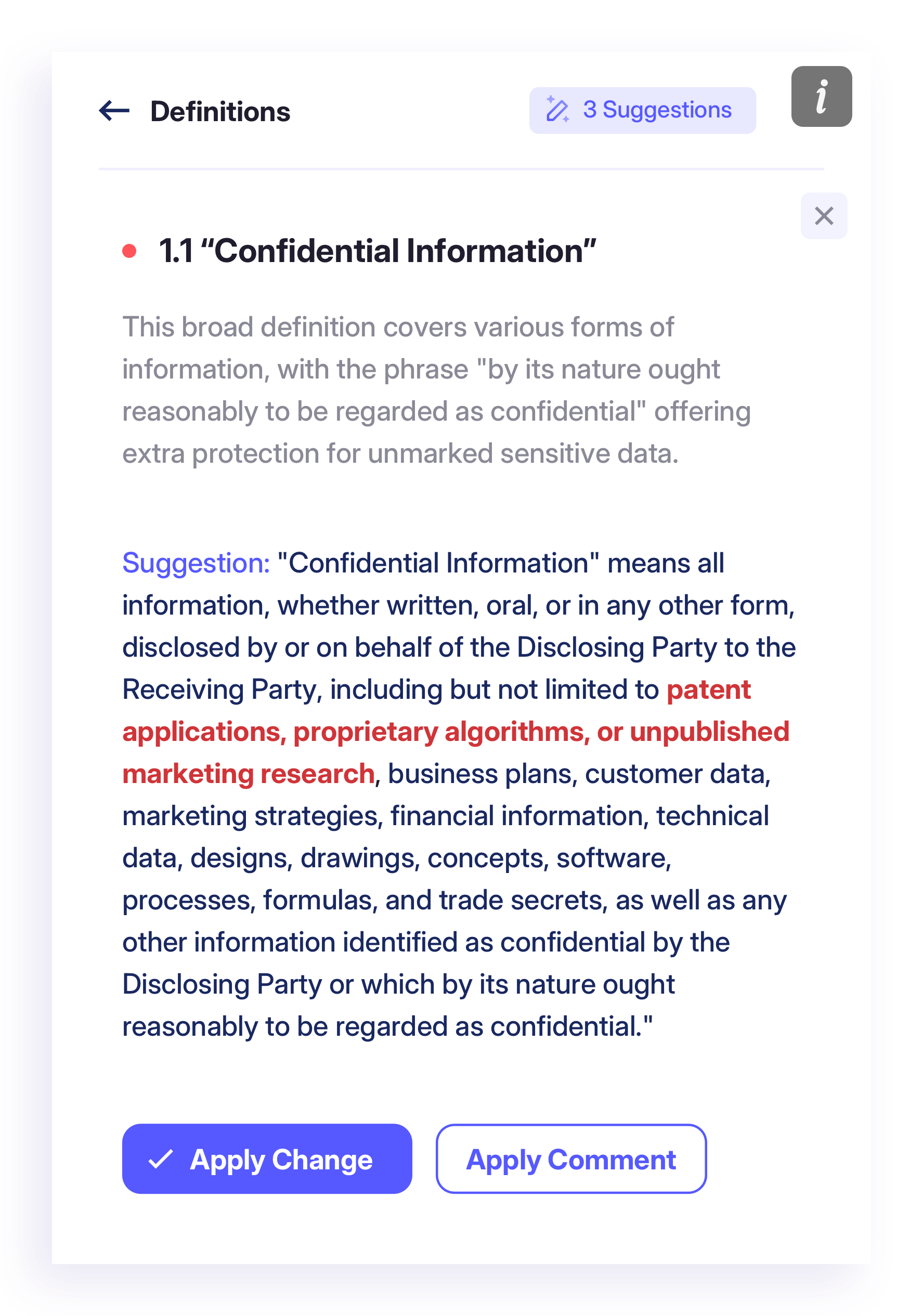 Providing valuable insights and suggestions that save you time and enhance accuracy with every agreement review.